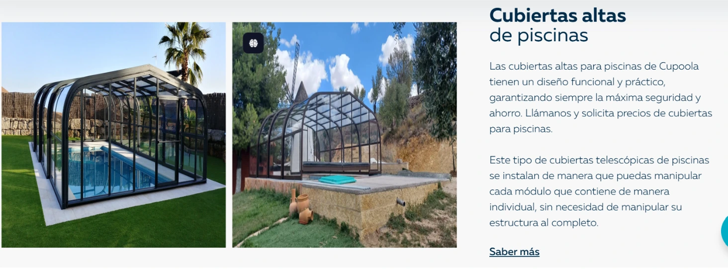 Si eres de los que prefiere subir de nivel y busca seguridad total (especialmente si hay peques o mascotas rondando), entonces tienes que echar un ojo a nuestras cubiertas. Desde las de lamas automáticas —que son una pasada de bonitas y cómodas— hasta techos telescópicos para bañarte incluso cuando sopla el Levante.